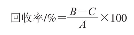 式中:A为在提取液中添加量的5-MTHF标准物质的峰面积;B为加标准品后的样品提取物峰面积;C为提取物峰面积。