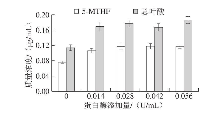 图4 蛋白酶添加量对5-MTHF和总叶酸提取的影响