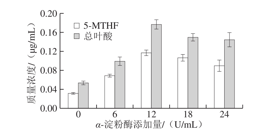 2.2.2 α-淀粉酶添加量对5-MTHF和总叶酸提取的影响