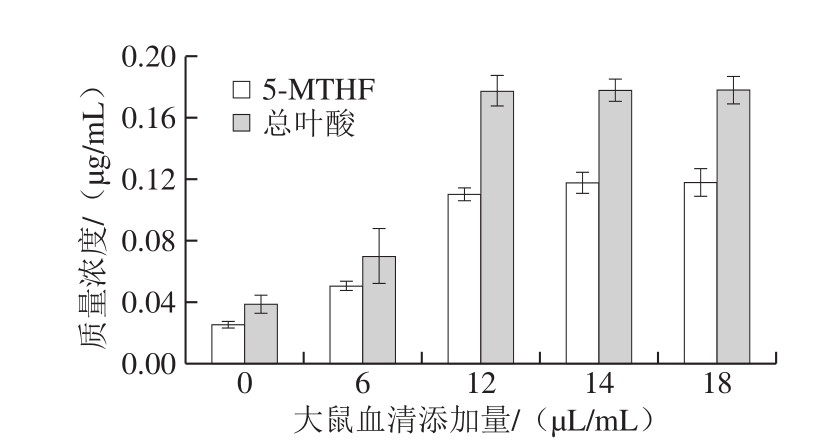 2.2.4 大鼠血清添加量对5-MTHF和总叶酸提取的影响