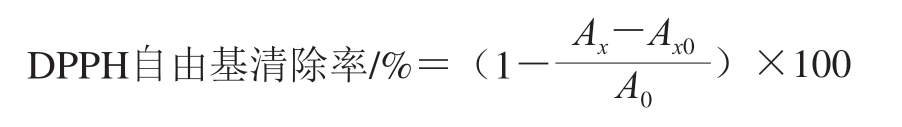 式中:Ax为加入样品溶液后的吸光度;Ax0为样品溶液本底的吸光度;A0为空白对照液的吸光度。