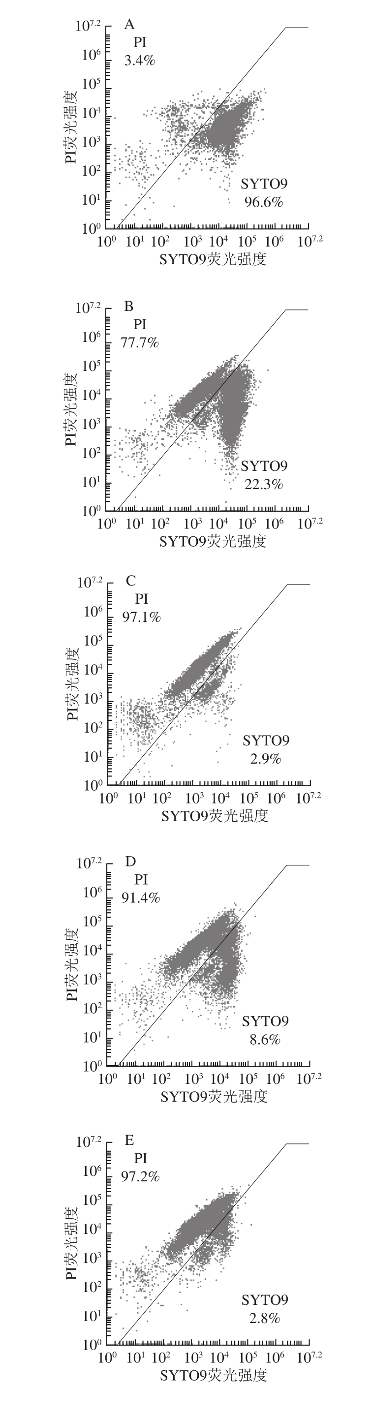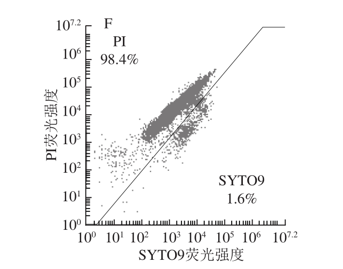 图5 流式细胞术分析苯乳酸与醋酸联用对单核细胞增生李斯特菌细胞膜完整性的影响