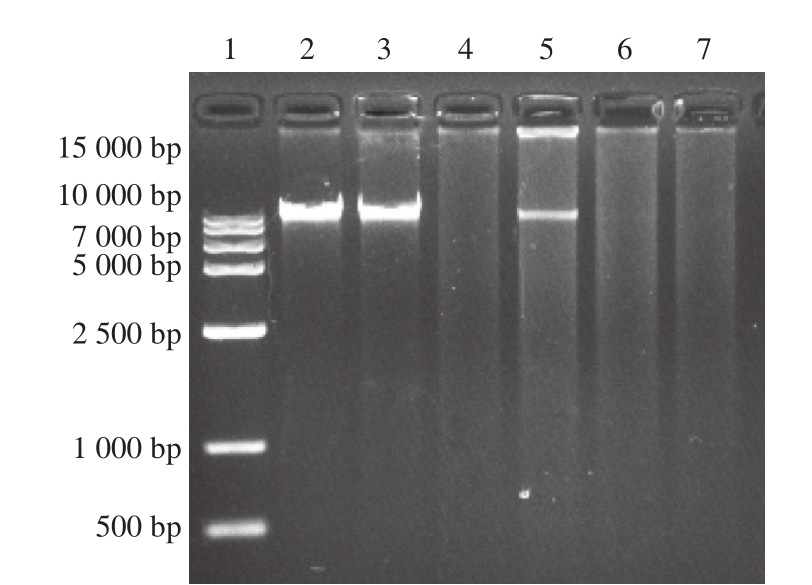 图7 苯乳酸与醋酸联用后单核细胞增生李斯特菌基因组DNA的凝胶电泳图