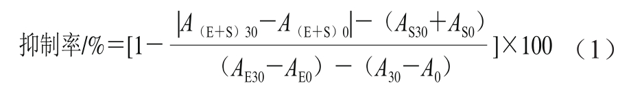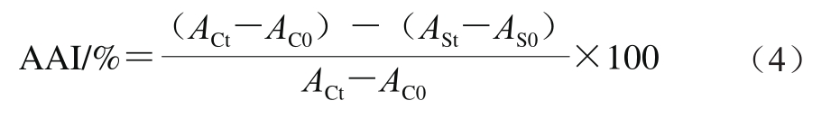 式中:As为加入样品时的吸光度;Ab为未加样品时的吸光度。