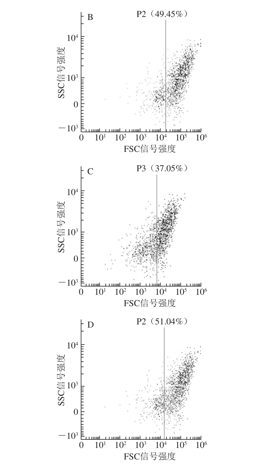图8 流式细胞仪分析复配抑菌剂处理对副溶血性弧菌细胞的影响