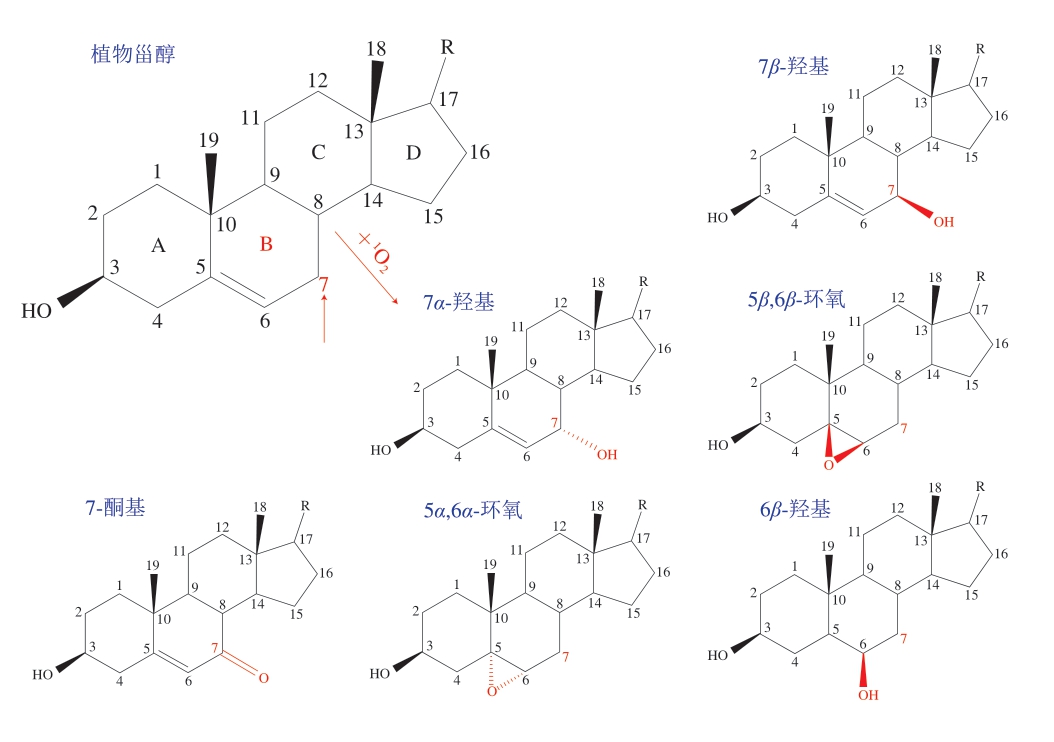 图5 植物甾醇及其主要光敏氧化产物[49]