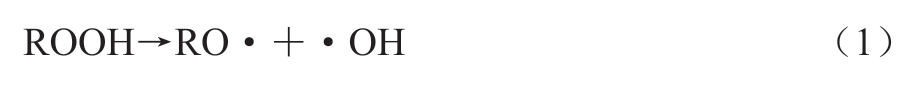 一是少量氢过氧化物(ROOH)的热分解,形成烷氧自由基(RO·)和羟自由基(·OH),如式(1)所示。