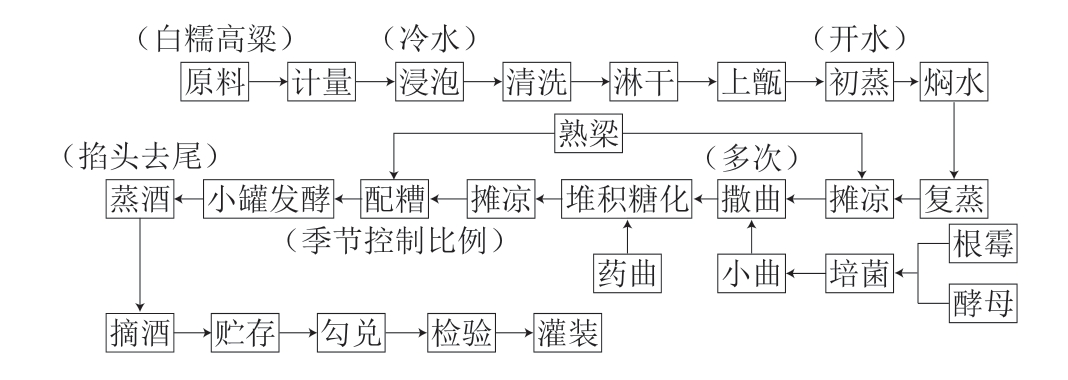 Fig. 1 Flow chart illustrating the brewing process of Yunnan Xiaoqu light-flavor Baijiu
