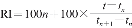 式中:n和n+1分别为未知化合物流出前后正构烷烃碳原子数;t为未知化合物保留时间/min;tn和tn+1为相应正构烷烃的保留时间/min;tn<t<tn+1。