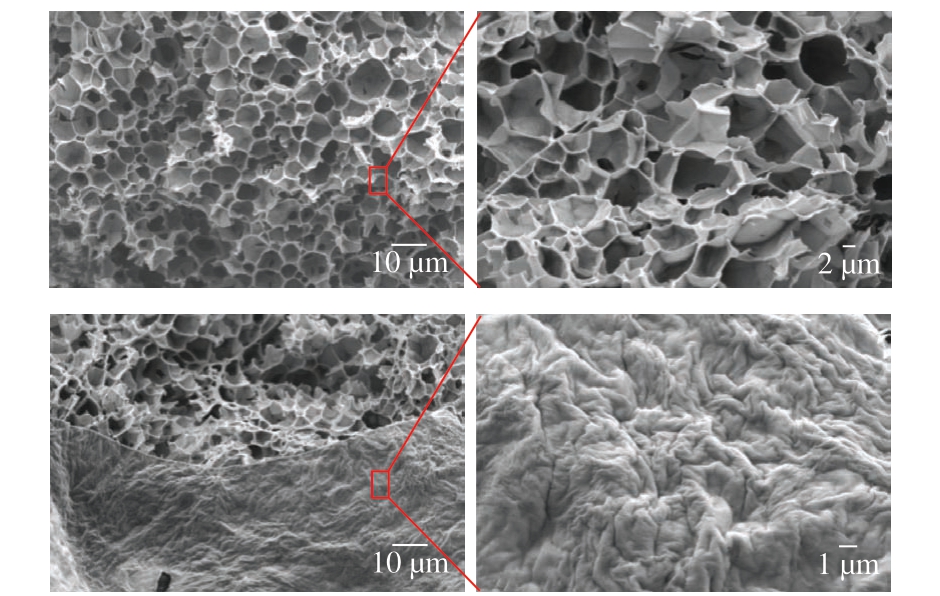 图8 GA纤维(4%)稳定的以正己烷为油相(40%)的乳液凝胶干燥样品的FE-SEM图