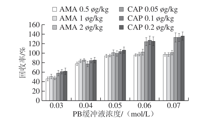 图10 不同浓度PB缓冲液的AMA和CAP添加回收结果