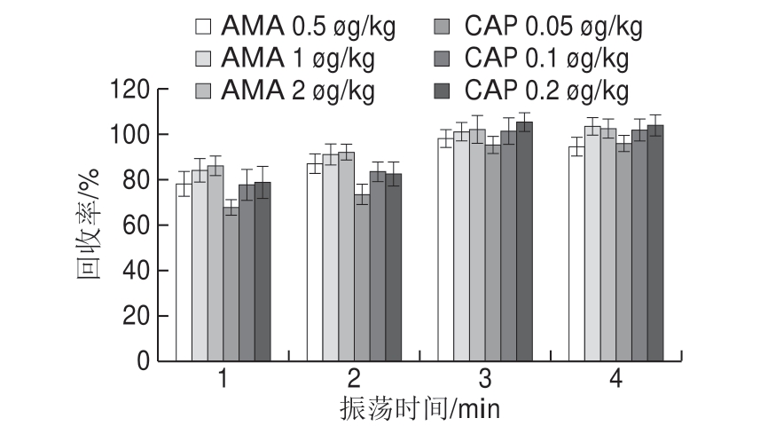 图9 不同萃取时间的AMA和CAP添加回收结果