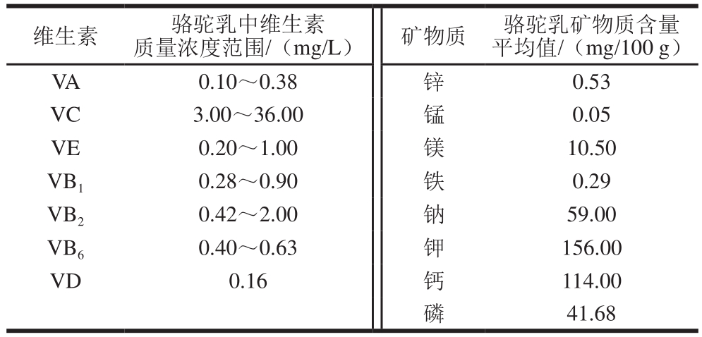 Table 2 Contents of major vitamins and minerals in camel milk[1-2,8]