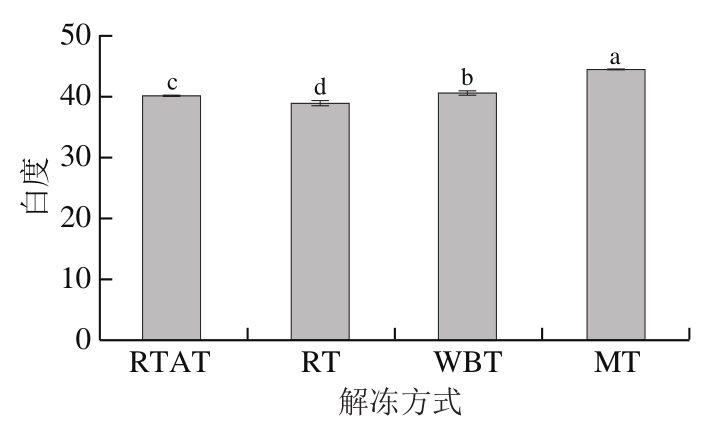 Fig. 2 Whiteness values of fillets thawed by different methods