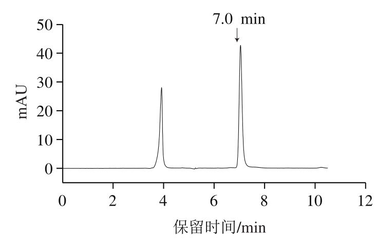 ZORBAX Eclipse XDB-C18色谱柱(4.6 mm×250 mm,5 μm);流动相A为超纯水,流动相B为甲醇,采用梯度洗脱,洗脱程序如下:95% A、5% B持续15 min,从15~17 min降至20% A、80% B,并保持5 min,从22~24 min增加至95% A、5% B,并保持16 min。流速0.5 mL/min,检测波长210 nm,柱温30 ℃,进样量20 μL。