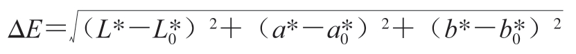 式中:值分别为贮藏0 d即初始草莓脯样品的亮度、红绿度和黄蓝度;L*、a*、b*值分别为贮藏一定时间草莓脯样品的亮度、红绿度和黄蓝度。