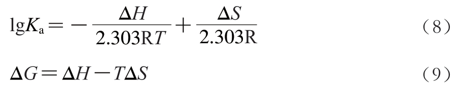 式(8)~(9)中:T为温度;R为气体常数;ΔG为自由能变化;ΔH为焓变;ΔS为熵变。