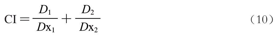 式中:D1、D2分别为组合系统中产生一定抑制水平芦丁和槲皮素的剂量;Dx1、Dx2分别为单独添加的导致相同抑制水平芦丁和槲皮素的剂量。