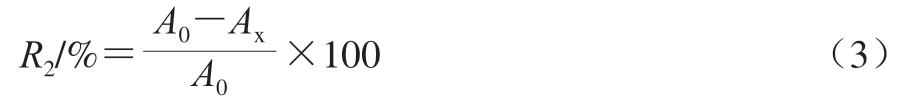 咖啡液ABTS阳离子自由基清除率(R2)按式(3)计算: