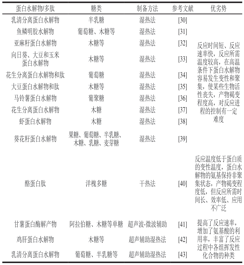 表1 食源蛋白水解物/多肽-糖类物质美拉德反应产物制备方法的比较