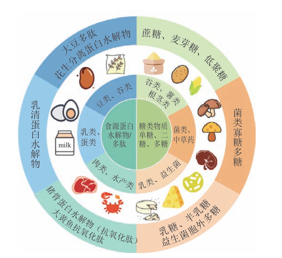 图2 美拉德反应中食源蛋白水解物/多肽与糖类物质的主要来源