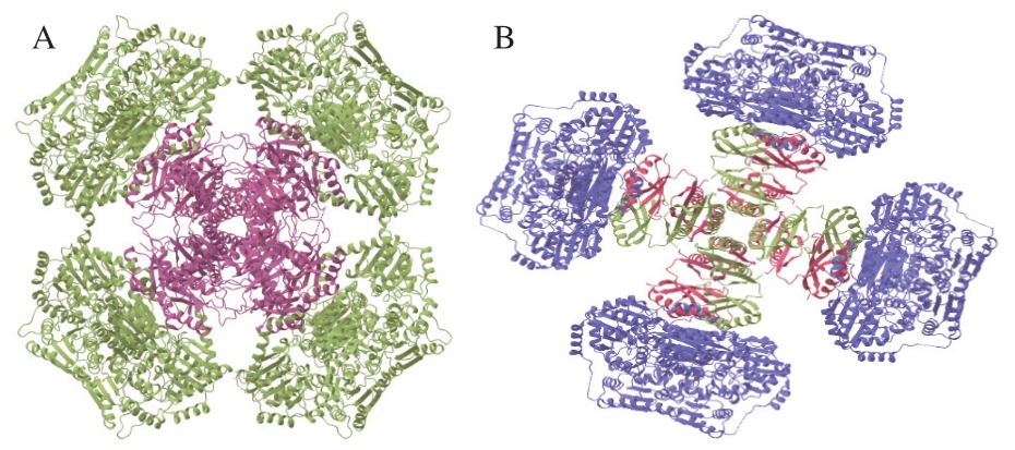 Fig. 3 Structure of Saccharomyces cerevisiae AHAS holoenzyme (A)and structure of Arabidopsis thaliana AHAS holoenzyme (B)[20]