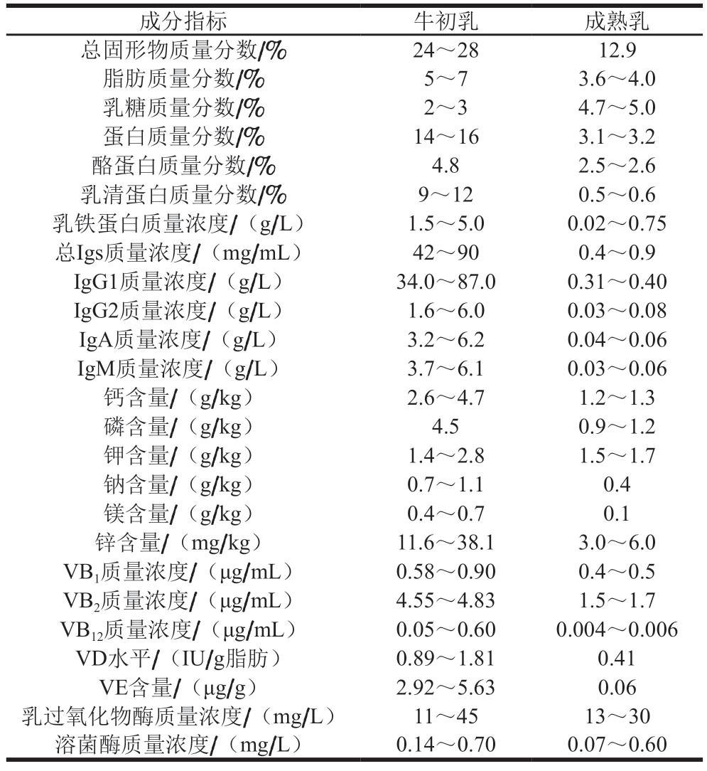 表1 牛初乳营养组成及其与成熟乳对比[6]