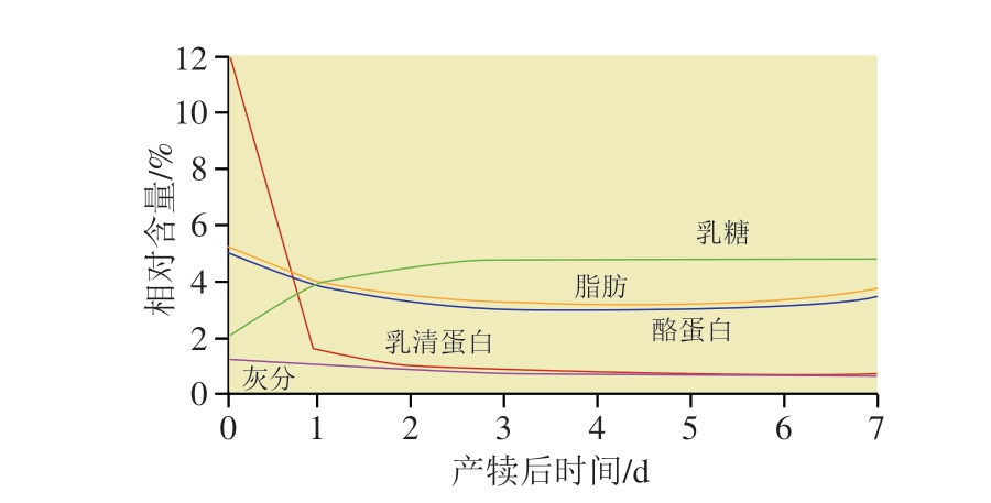 Fig.1 Changes in the composition of bovine milk after parturition[8]