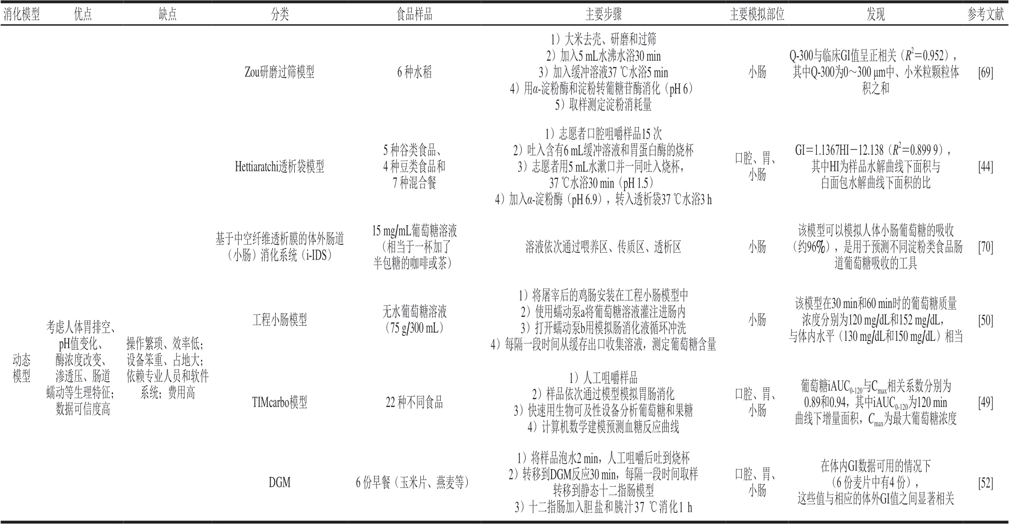 Table 1 Major procedures of in vitro static and dynamic models and their correlations with food GI values