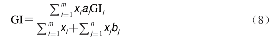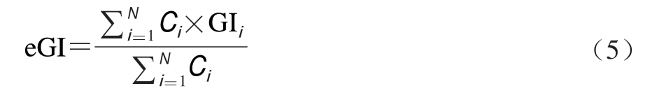 正常饮食过程中,消费者往往需要同时摄入不同种类的食物。因此,为评估一份复合餐的GI值,FAO以该复合餐中各类食物自身的GI值为准,并利用相关数据库获得该复合餐中各类食物的GI值,代入到公式(5)中,进而来计算其eGI值。