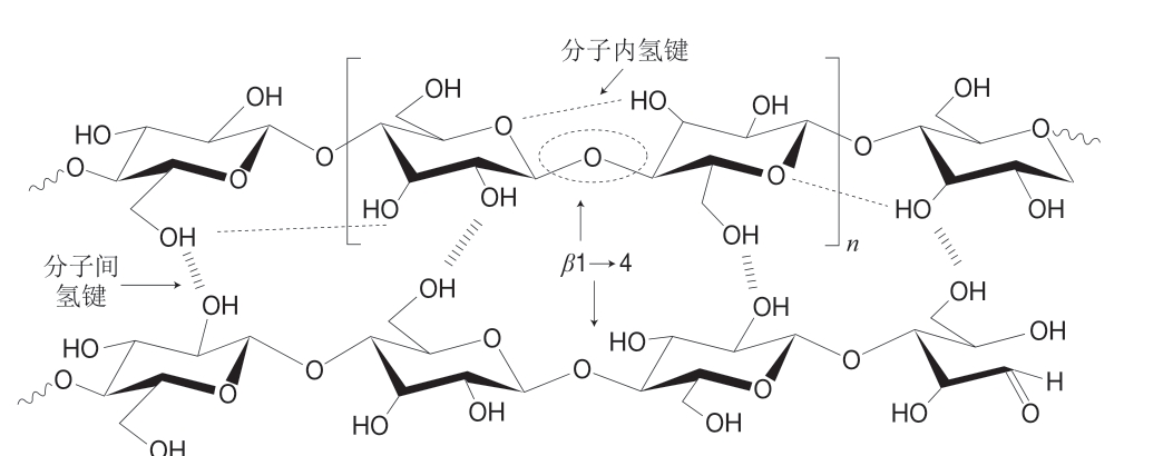 图2 纤维素结构和分子内/分子间氢键[7]