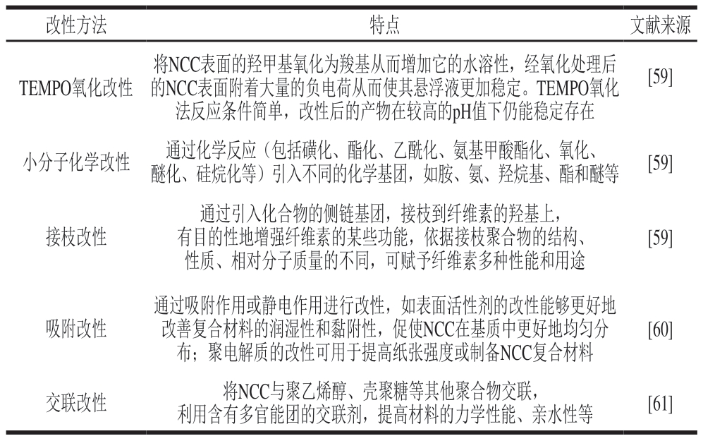 表5 NCC的改性方法