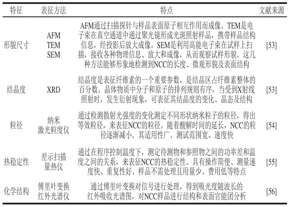表4 NCC的结构表征方法