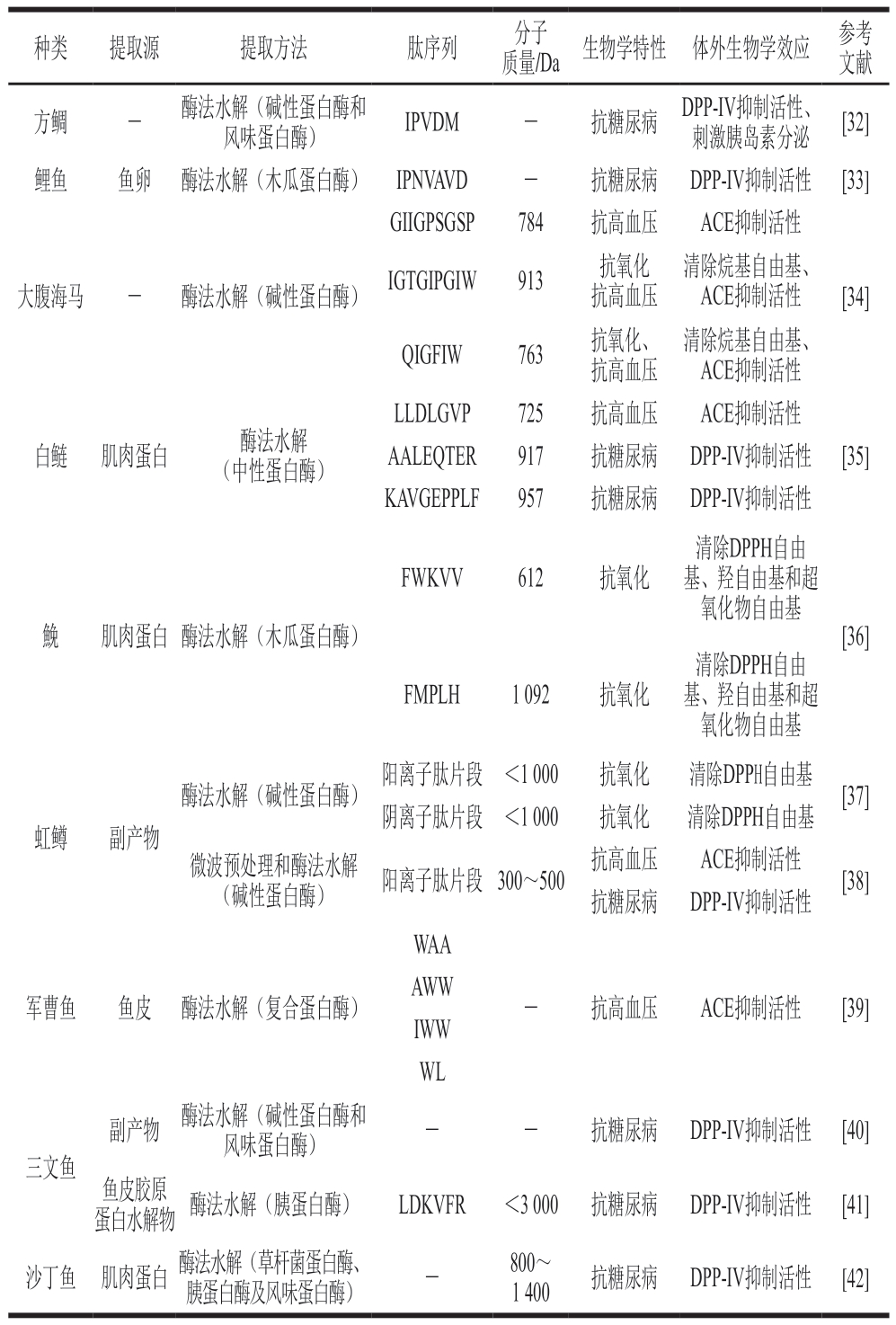 Table 3 Bioactive peptides derived from fish,crustaceans and other marine species in the last five years