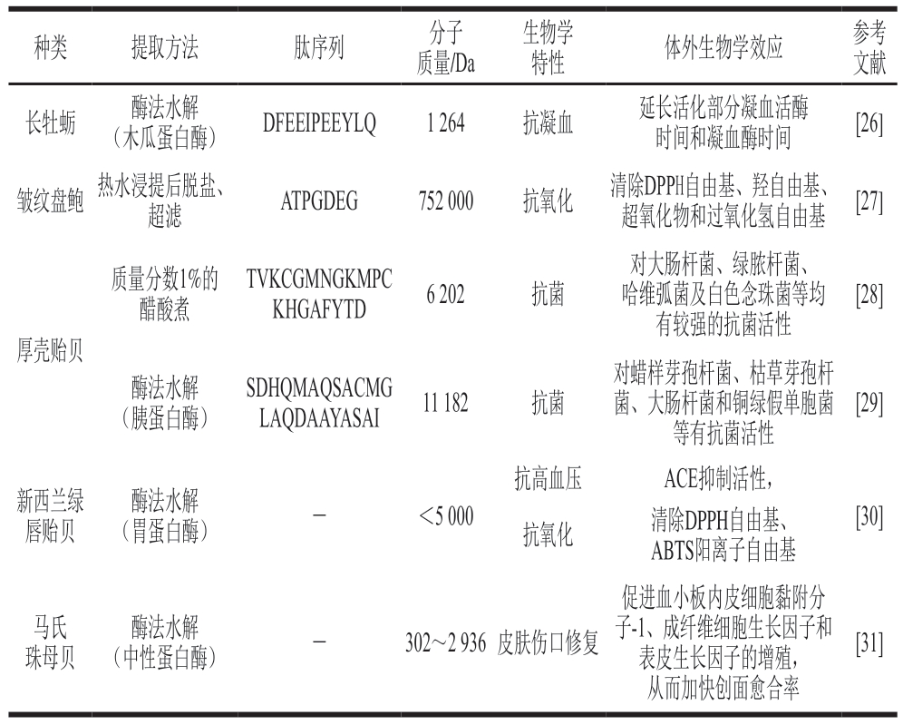 表2 近5 年软体动物源的生物活性肽研究