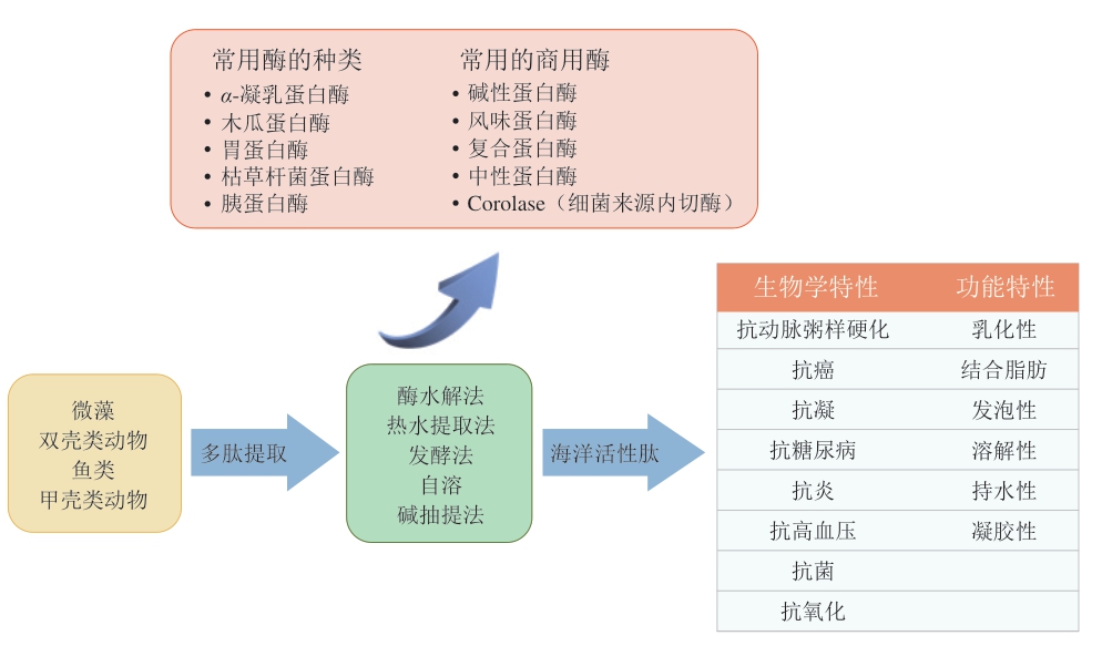 图1 海洋生物活性肽的常用生产方法及性质