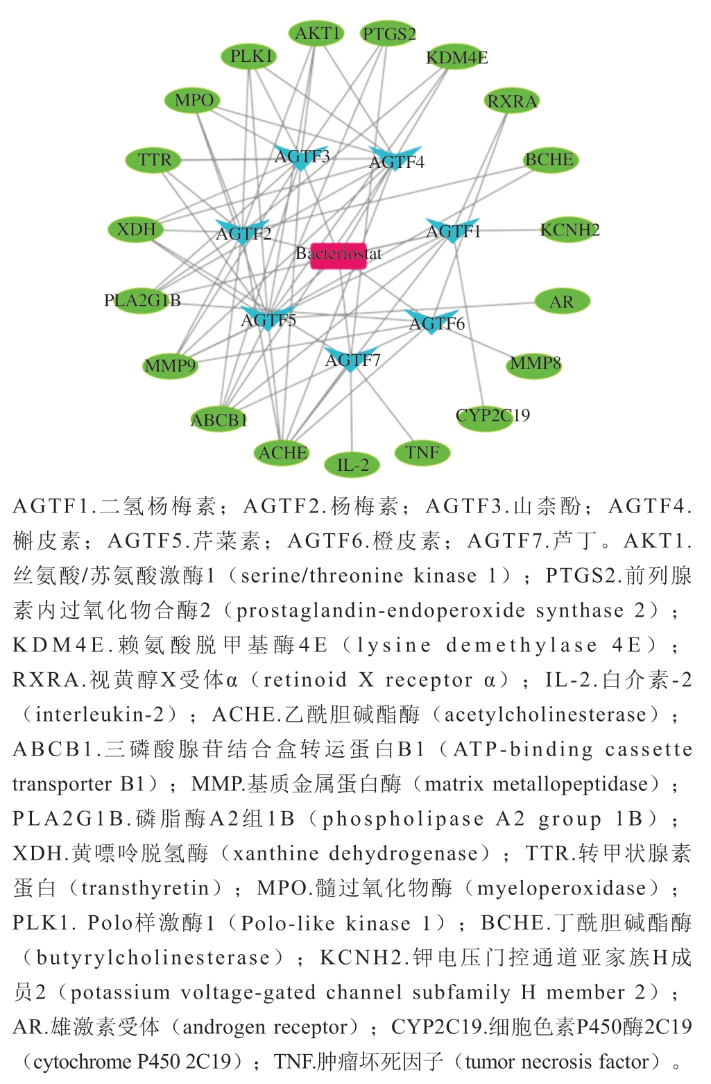 Fig. 2 Network diagram of antibacterial flavonoids in Ampelopsis and targets