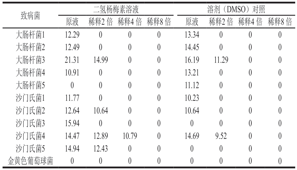 表3 以DMSO为溶剂的二氢杨梅素抑菌效果