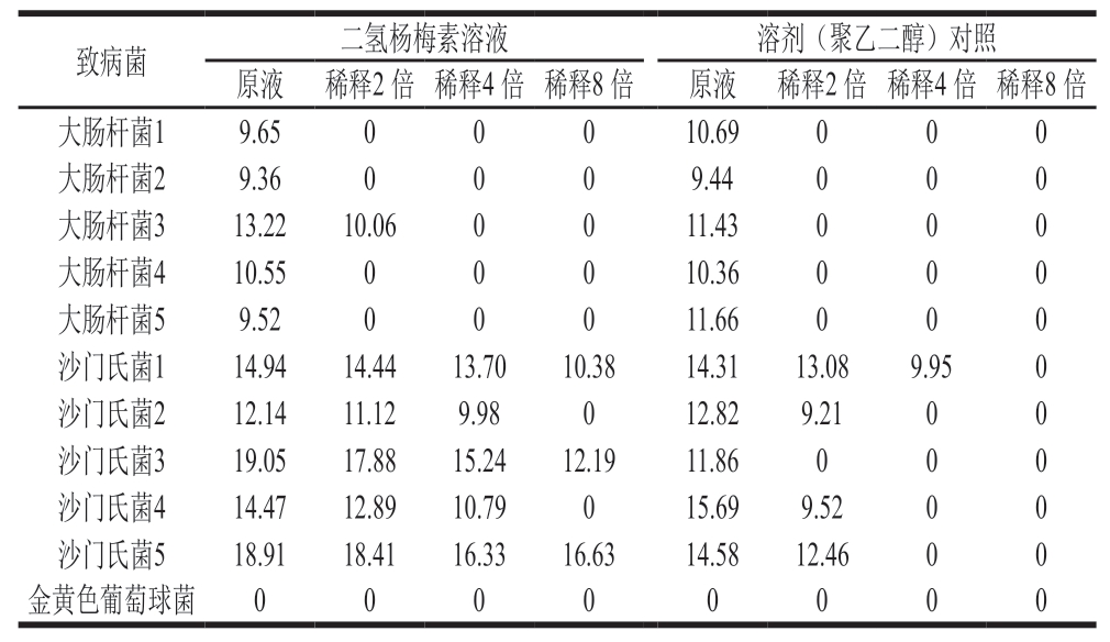 表4 以聚乙二醇为溶剂的二氢杨梅素抑菌效果测定