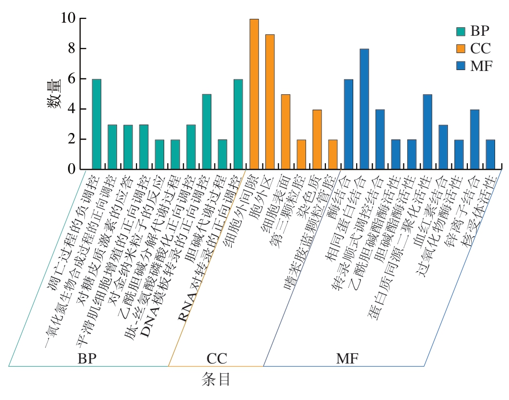 图4 藤茶黄酮类化合物成分-抑菌交集靶点的GO功能富集分析