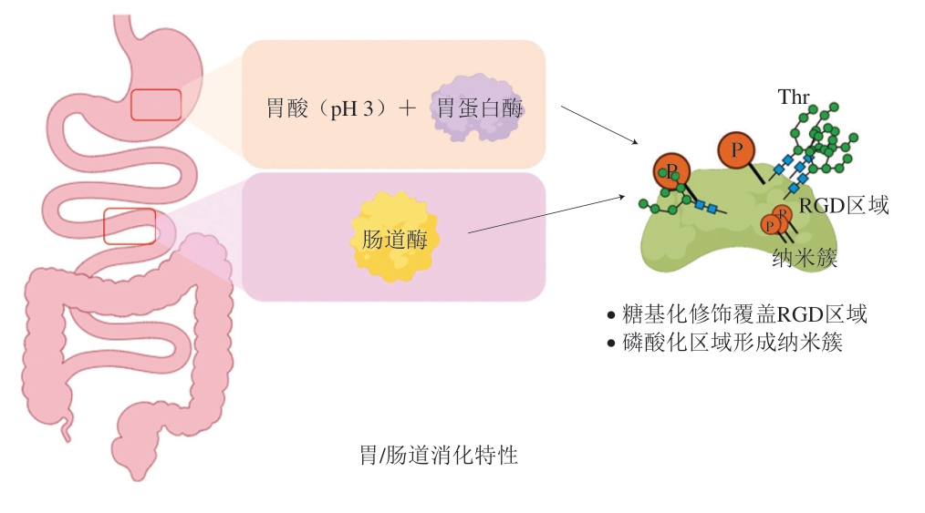 近年来,科研工作者们对乳源OPN的消化吸收特性进行了深入探讨,取得了一定的进展。其中磷酸化修饰和糖基化修饰的影响机制显得尤为重要。本节旨在系统分析乳源OPN的消化吸收特性,概述其在机体内的稳定性、消化、吸收机制和生物利用度等相关研究的现状,以期为后续研究提供参考和启示。
