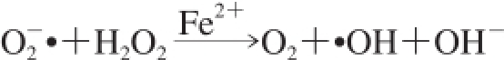·OH非常活泼,其引起ROS对生物大分子产生的大部分损伤,生物·OH的主要来源是经Fenton反应(净Haber-Weiss反应的一半)由金属催化H2O2的分解[80]:Mn++ H2O2→M(n+1)++·OH+OH-。