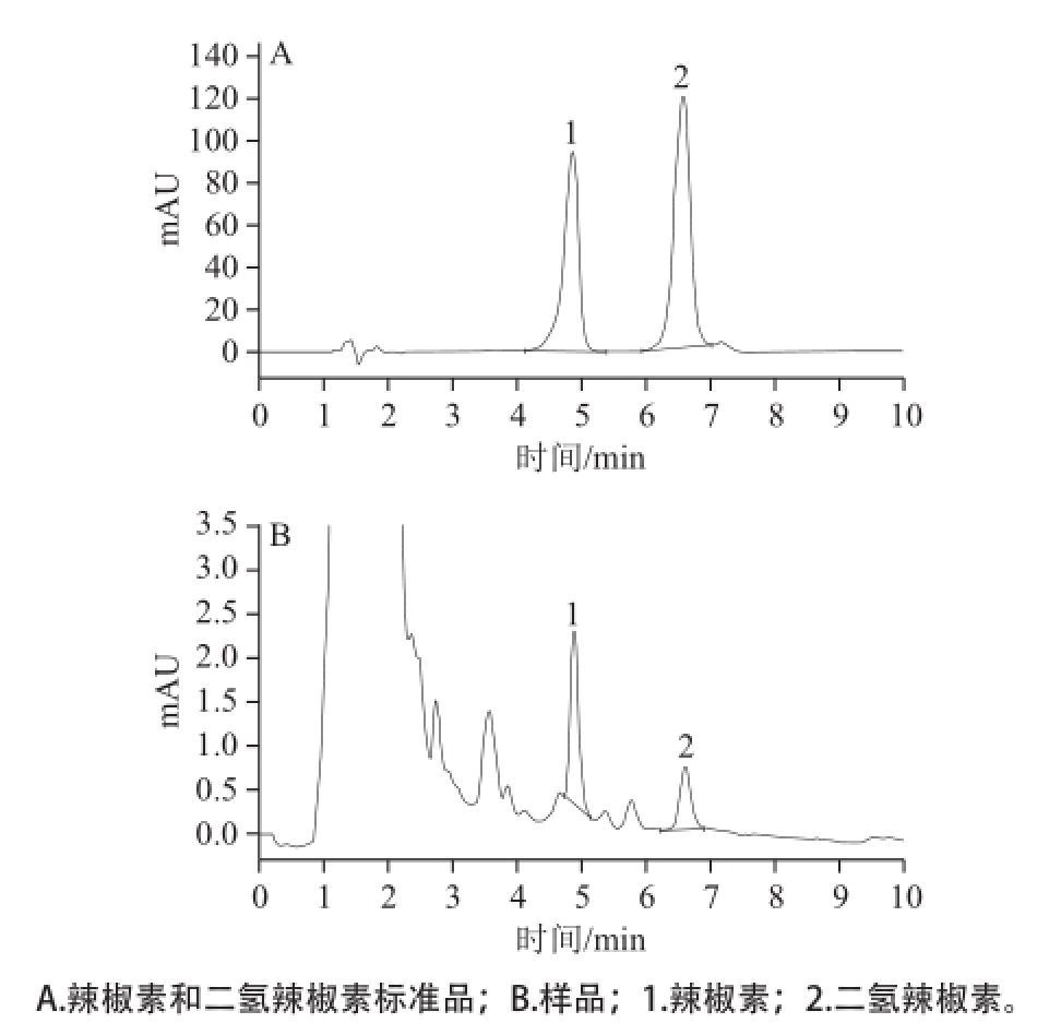 图1 辣椒素和二氢辣椒素色谱图