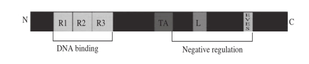Fig.2 Functional domain map of c-MYB transcription factor structure