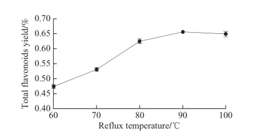 Fig.3 Effect of reflux temperature on the total flavonoids yield from Suaeda salsa