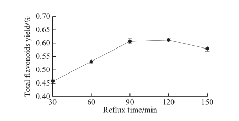 Fig.4 Effect of reflux time on the total flavonoids yield from Suaeda salsa