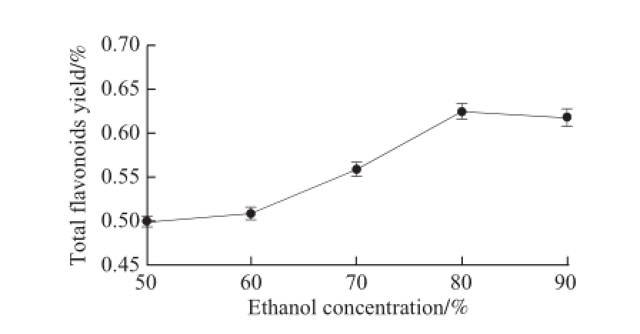 Fig.2 Effect of ethanol concentration on the total flavonoids yield from Suaeda salsa
