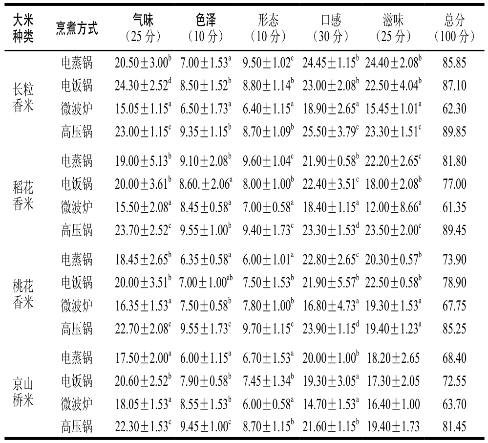 表2 不同烹煮方式对米饭蒸煮品质的影响