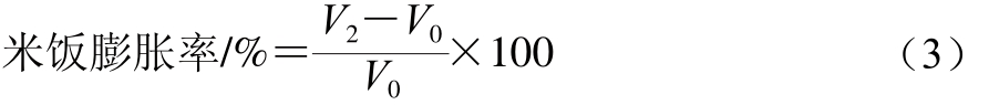 按同样方法测定50 g原料米的体积(V0),从而按式(3)计算出米饭膨胀率。