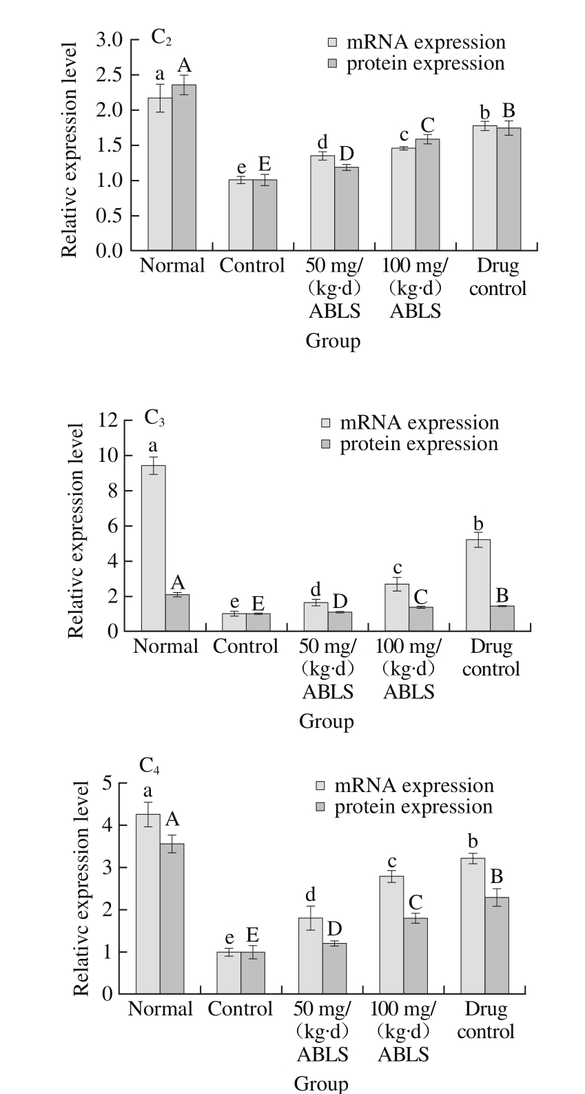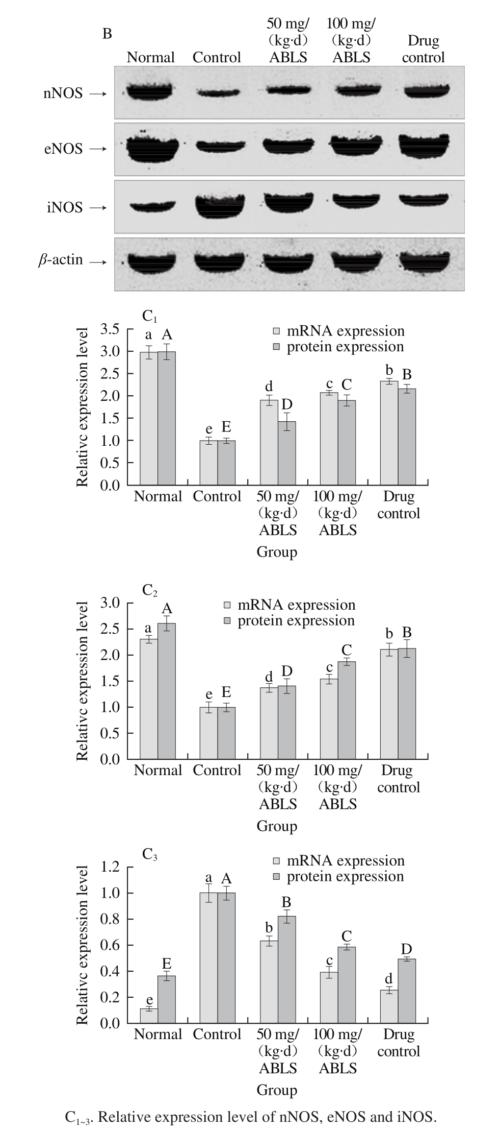 A-E. Normal, control, 50mg/(kg·d) ABLS, 100 mg/(kg·d) ABLS and drug control group.